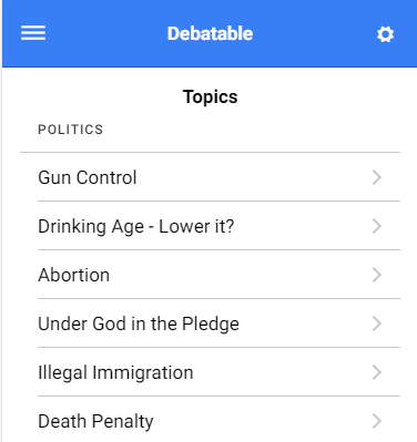 Political topics app in Ionic 2