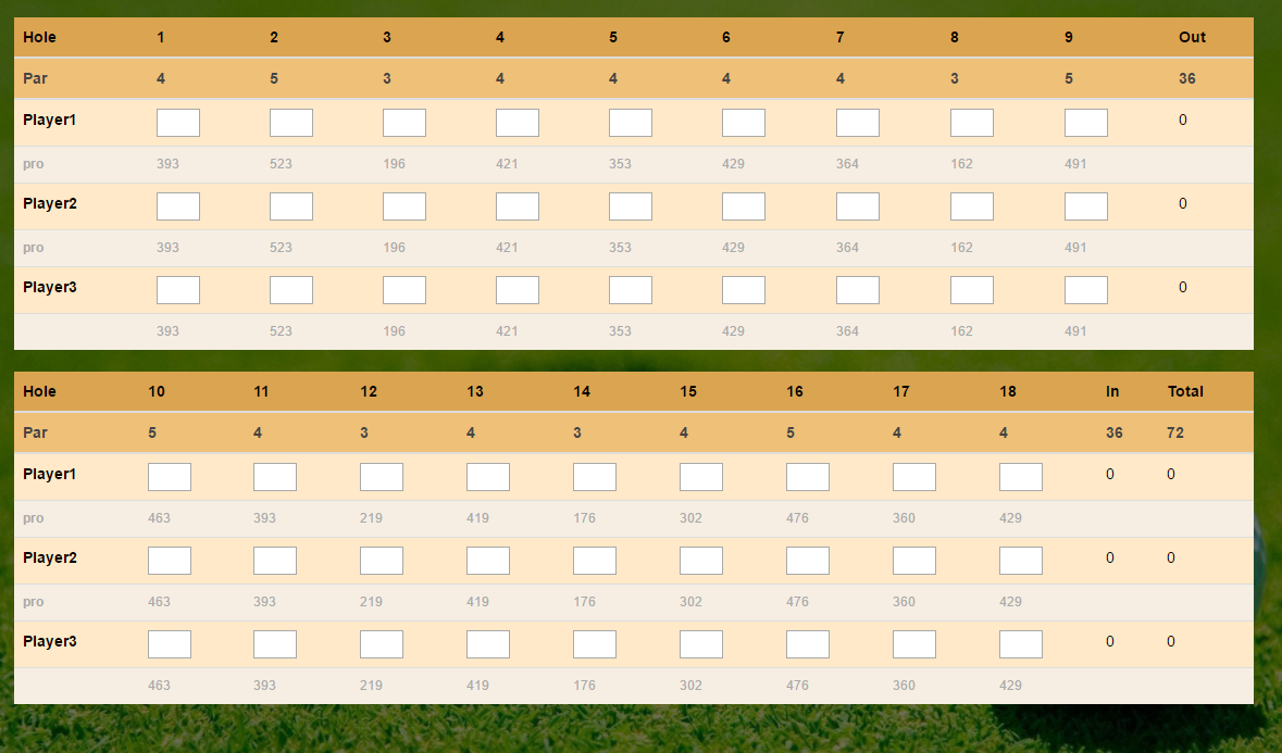 Working Golf Scorecard using a golf course API